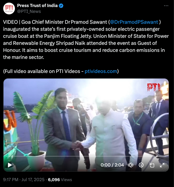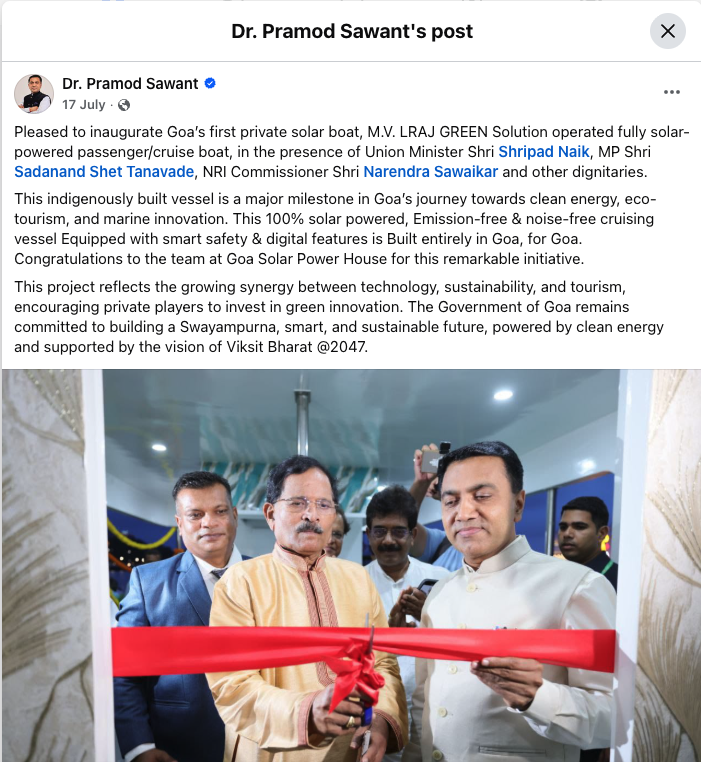 Goa’s First Private Solar Electric-Powered Boat